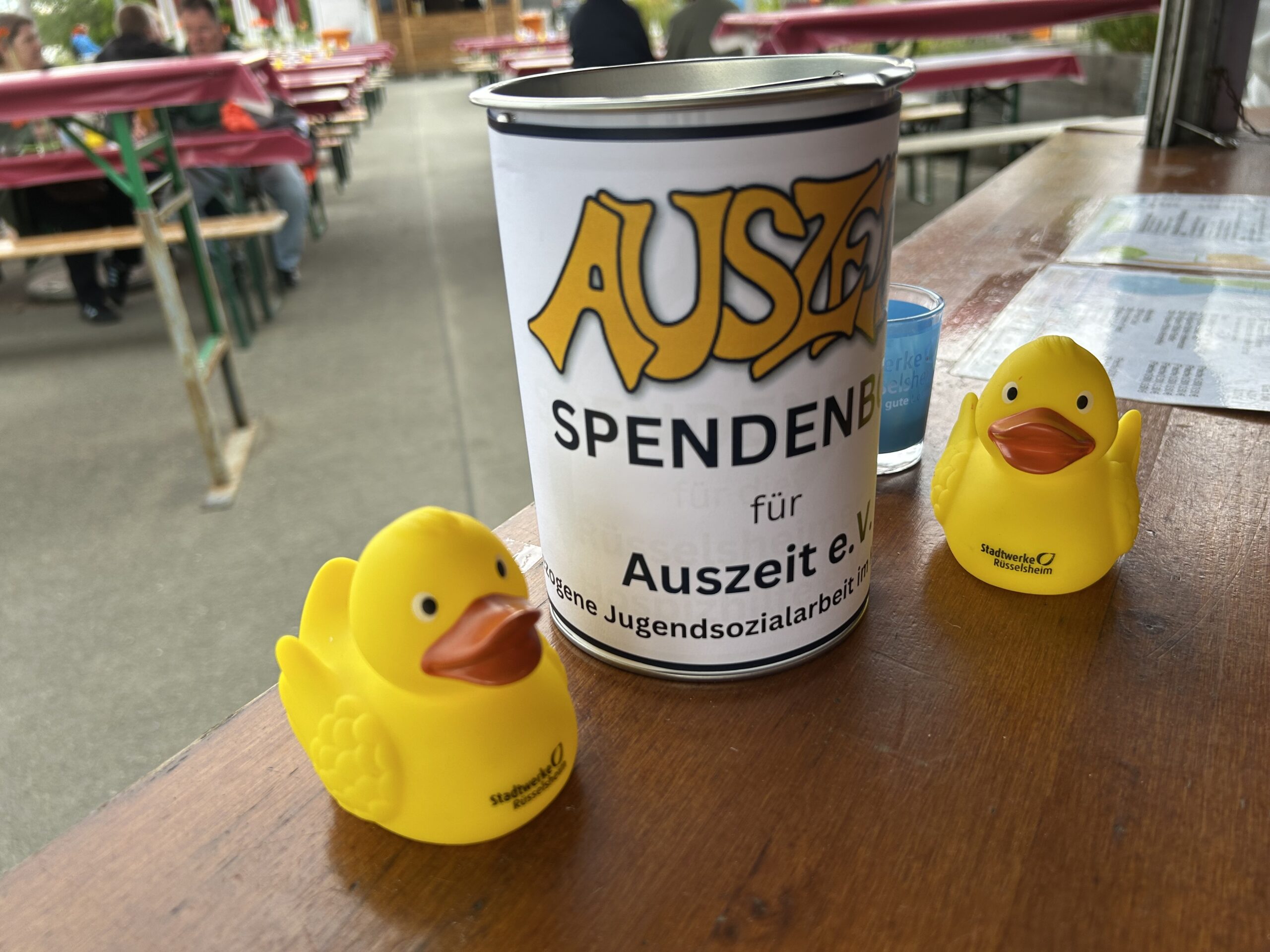 Der Erlös aus den Einnahmen von „Wein am Main“ geht dieses Mal an den Verein „Auszeit“, der in Rüsselsheim und dem Kreis Groß-Gerau sportbezogene Jugendsozialarbeit anbietet. Mit dem Geld wird die Neuausstattung des Spielmobils unterstützt, mit dem Auszeit verschiedene Treffpunkte anfährt. Kinder und Jugendliche können dort das Equipment kostenlos ausleihen. Das Spielmobil bietet den Auszeit-Mitarbeitern die Möglichkeit, die Kinder und Jugendlichen in ihrer Entwicklung zu unterstützen, soziales Verhalten zu üben und sozial Benachteiligte zu integrieren.