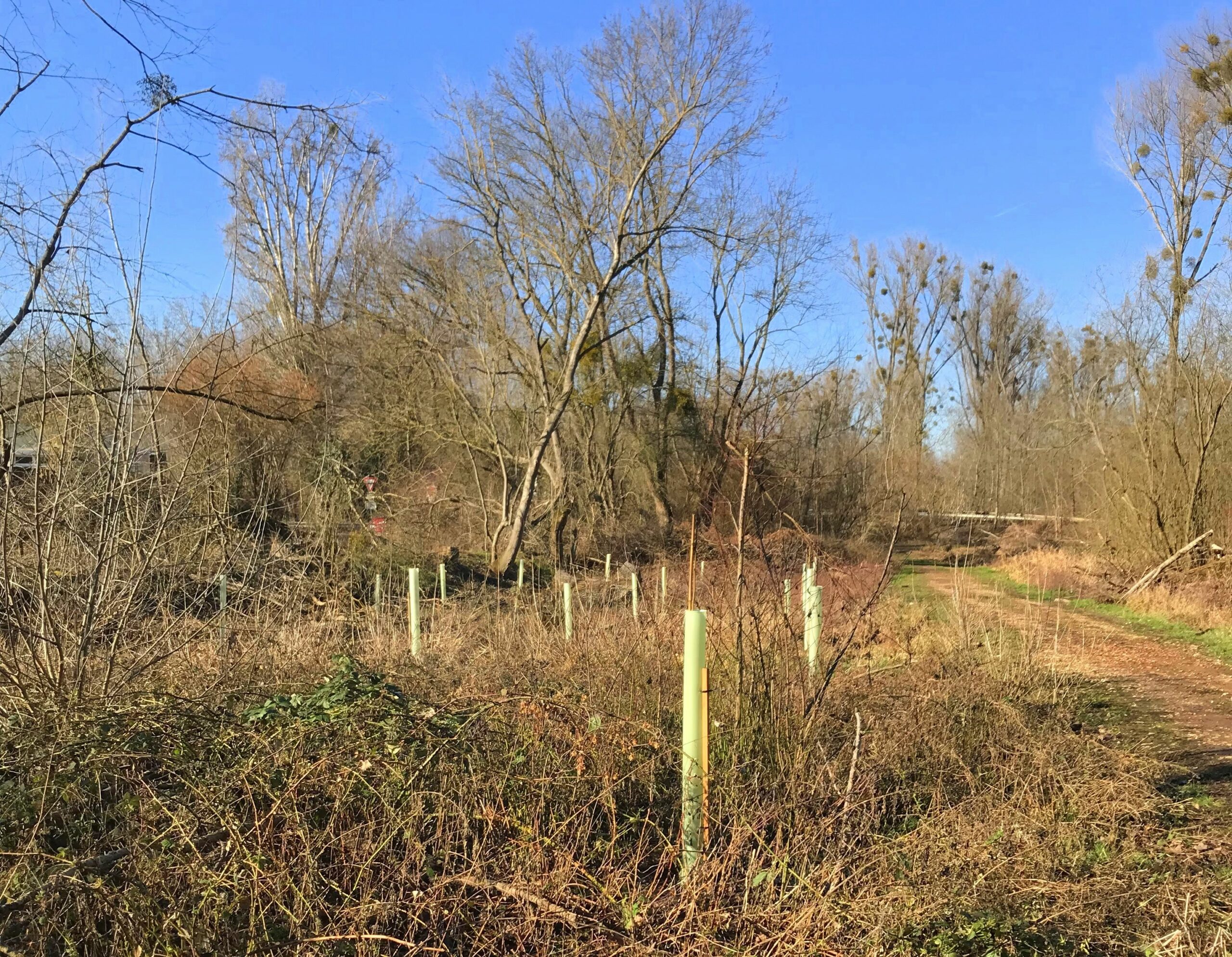 Etwas außer der Reihe, aber ebenfalls Teil der Aktion ist die am Strandbad neu gesetzte große Flatterulme. Sie ersetzt dank einer Großspende einen alten verschwundenen Solitärbaum. Viele Spender haben lange auf die Pflanzung „ihres“ Baumes warten müssen, denn die Pflanzung war deutlich teurer als ursprünglich angenommen. Doch jetzt sind alle gespendeten Bäume gesetzt.