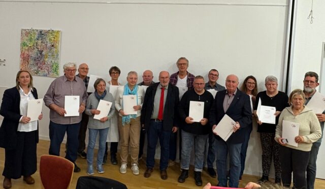 Eine besondere Auszeichnung bekam Hans-Peter Hexemer, der den Ortsverein von 1980 bis 2005 als Vorsitzender leitete und seit 50 Jahren Mitglied ist. Er erinnerte mit einem humorvollen Rückblick an die Anfangszeit, als der Verein noch aus rund 20 Mitgliedern bestand. Dabei hob er auch das Engagement von Elfriede Hexemer hervor, die 28 Jahre als Schriftführerin tätig war. Hexemer verwies zudem auf das Jahr 1983: Mit der Einrichtung der Paul-Hexemer-Begegnungsstätte in der Grundschule sei eine Grundlage für Angebote in der Kinder- und Seniorenarbeit geschaffen worden. Diese Entwicklung habe sich bis heute fortgesetzt. Inzwischen zählt der Ortsverein 207 Mitglieder und nutzt eine neue Begegnungsstätte.