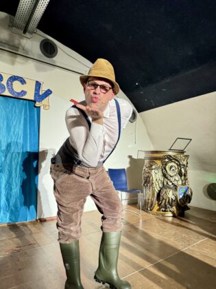 Einen weiteren Höhepunkt bot Harry Borgner mit seiner Gitarre. Humorvoll nahm er sich der künstlichen Intelligenz in der Musik an und kombinierte den „Kleinen grünen Kaktus“ mit Stimmen von Grönemeyer, Carpendale, Heintje und Helge Schneider. Der Nachtwächter Adi Guckelsberger reimte sich gewohnt treffsicher mithilfe des Publikums durch Ehealltag, Hundegeschichten und die Finther, bevor die Altstadtbuben vor der Pause mit Stimmungsliedern und einer Polonaise durch den engen Keller alle von den Stühlen holten.