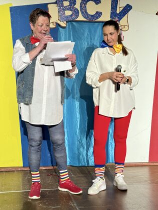 Die erste Wortgranate des Abends zündete Tobias Paltz als „Bauer Sepp“. Auf verzweifelter Frauensuche trat der Südwest-Pfälzer in jedes Fettnäpfchen, forderte das Publikum immer wieder heraus, und sorgte mit Grimassen, Geräuschen und einer legendären Toilettengeschichte für Lachtränen und die erste Rakete. Die hessische Kultfigur Olga Orange, gespielt von Thomas Rau, berichtete anschließend von ihren Erlebnissen bei „Bauer sucht Frau“ und stellte klar: über 60 brauche man keinen Mann mehr. „Die machen Dreck und nehmen einem den Fernsehsessel weg.“ Stimmungssänger Stefan Bersch mischte sich mitten unters Publikum und brachte die Damen mit Klassikern wie „Joanna“ und „Eine neue Liebe ist wie ein neues Leben“ in Bewegung. Zwischendurch genossen die Gäste die hervorragende Bewirtung durch die Ehrenamtlichen des BCV mit rheinhessischen Spezialitäten und guten Weinen.