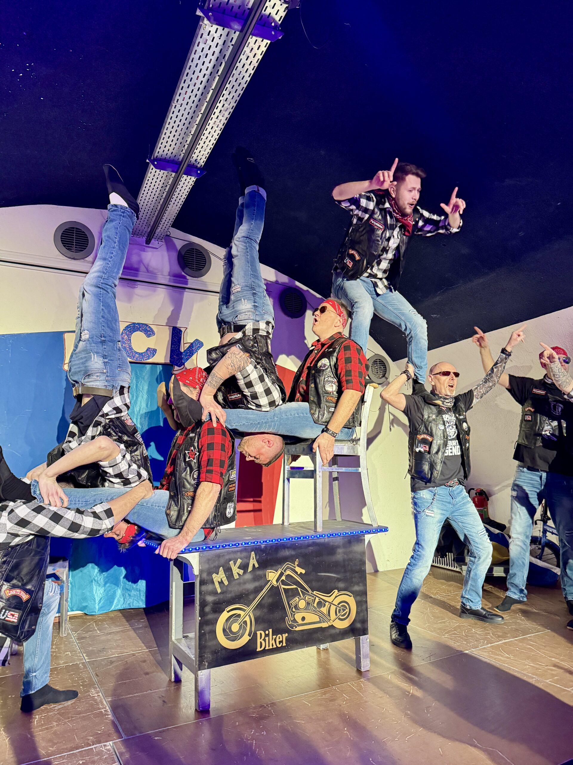 Den Auftakt auf der Bühne machten die „Mini-Donkeys“. Die sechs- bis neunjährigen Tänzerinnen begeisterten mit ihrem fröhlichen Cheerleadertanz und ernteten großen Applaus. Dann traditionell die Einschwörung auf die Fasnacht: 120 Damen schworen auf Jugend, Schnaps, warme Frikadellen und auf alles, was zählt – ein stimmungsvoller Moment. Und sofort legte das Ballett „Little Donkeys“ mit ihrem Astronautinnen-Tanz nach: 17 Tänzerinnen, perfekt einstudiert, kreativ und wunderschön anzusehen.