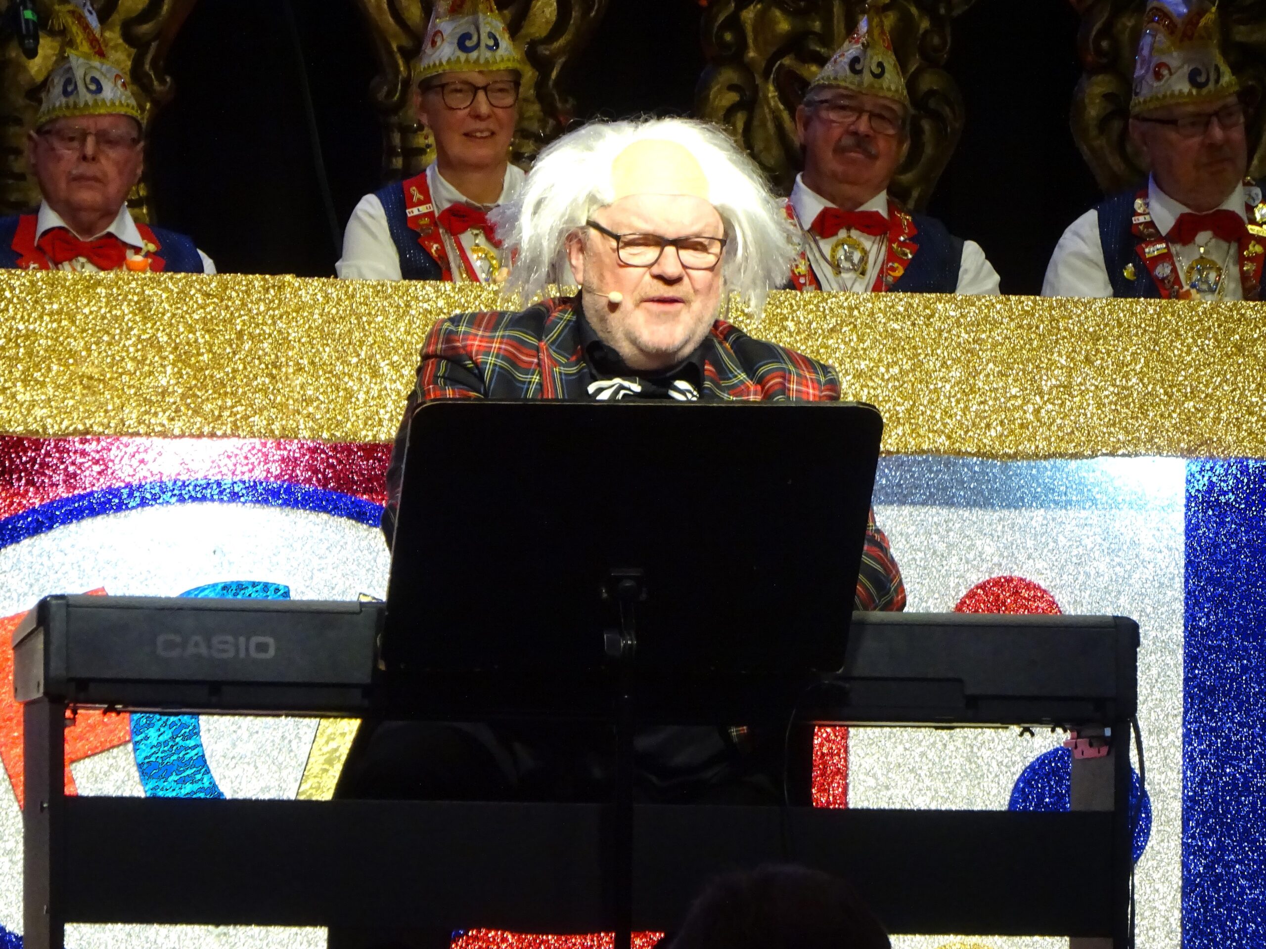 Ansonsten dominierte gut gemachter Kokolores. Als „Professor für Wein und Musik Prof. Dr. Dr. Durst“ brillierte Michael Geyer mit gelungenen Wortspielen und referierte über männliche und weibliche Artikel: Eines sei klar: „Die Rückfahr-/Einfahrtshilfe, die ist weiblich!“ Dann setzte er sich ans Klavier und schmetterte den „Rhein-Wein-Blues“. Erstmals beim FCV zu Gast war „Student“ Nick Stenner aus Laubenum. Sein Studium dauert noch 20 Jahre, danach geht er direkt in Rente.