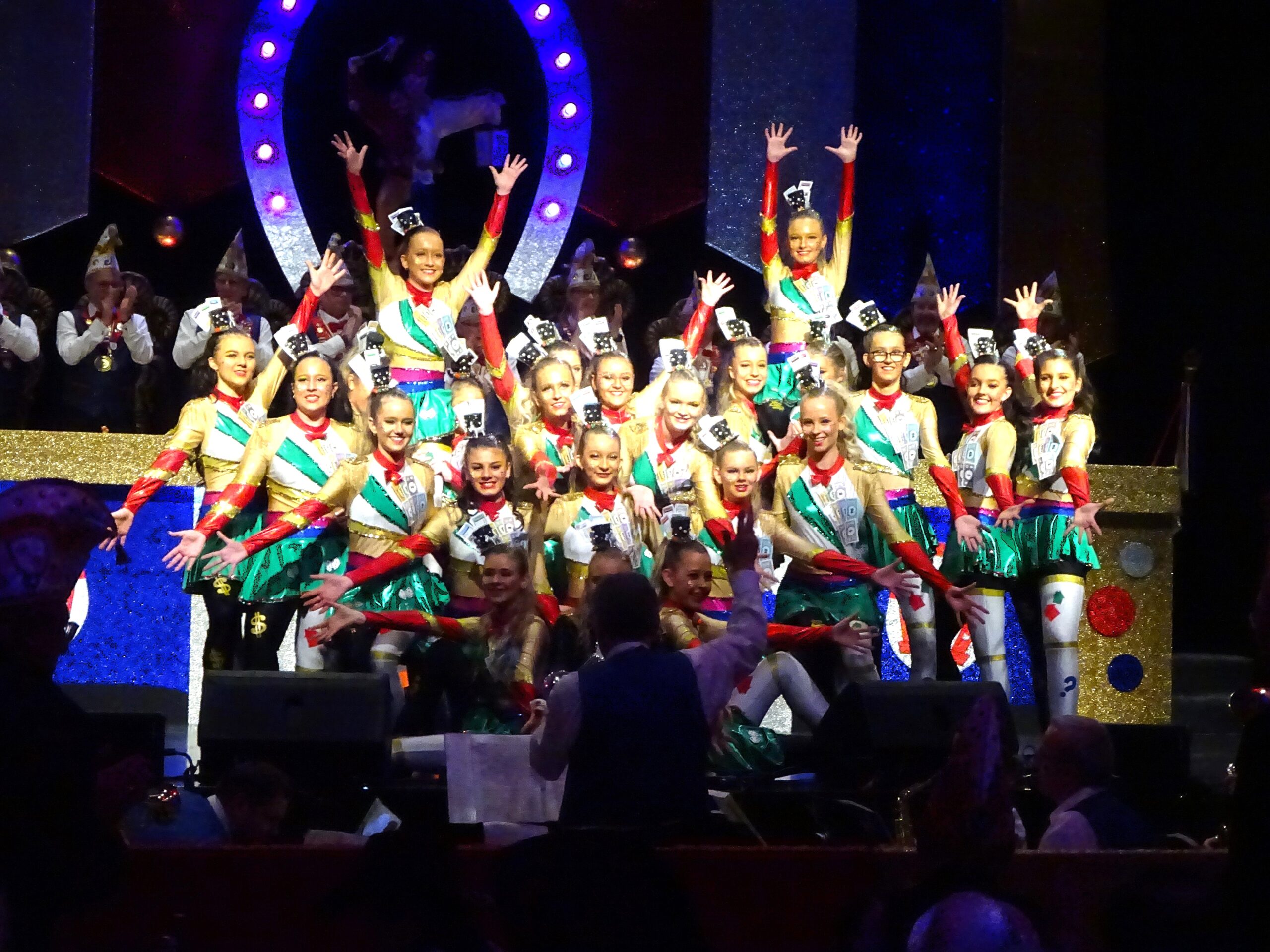 Freunde der getanzten Fastnacht kamen zweimal voll auf ihre Kosten. Elf „Dancing Queens“ vom CKV Mainz-Bretzenheim wirbelten in Weiß als „Gänsjer“ zu „Tanz mit der Gans“ über die Bühne. Das Spiel „Monopoly“ hatten sich die 23 Tänzerinnen des Dienheimer Balletts „Sunshine“ als Thema ausgesucht. Tolle Kostüme, eine ansprechende Choreografie, atemberaubende Flugeinlagen und schmissige Technohits wie „Eins, zwei, Polizei“: Hier stimmte alles.