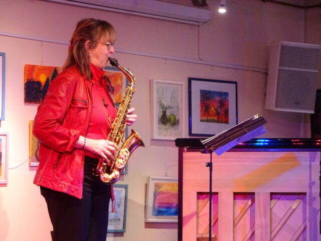 Das Duo verlor keine Worte und startete mit dem ersten Instrumentalstück. Beim ersten fröhlichen Stück wechselten sich Piano und Klavier ab, um dann gemeinsam zu erklingen. Dafür gab es viel Applaus und die ersten Bravo-Rufe. Mit einem melancholischen Stück ging es weiter, mit einschmeichelnden Klängen des Saxofons. Steph Winzen stellte das Werk als Einstimmung auf den lateinamerikanischen Abend als den Tango „Petite Suite Latine“ von Jerome Naulais vor. Sie ging auch auf die Entstehung des Duos ein. „Beim Grand Tango von Astor Piazolla haben wir uns gefunden.“ Dieser offenbare viele Gefühlswelten: von bitterböse über wütend bis traurig. Da das folgende Stück ursprünglich für Cello geschrieben worden sei, griff sie zu einem größeren Saxofon, dem Altsaxofon. Es folgte ein virtuoses Instrumentenspiel am Altsaxofon und am Klavier, das sich zu einem harmonischen Ganzen zusammenfügte.
