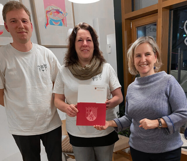 NEUSTADT – Das Mainzer Foodsharing-Café „krumm & schepp“ hat sein erstes Jahr abgeschlossen. Das nachhaltige Café am Karoline-Stern-Platz gesellte sich im vergangenen Dezember als Verein zur Reihe von Initiativen, die seit 2013 in Mainz über 600.000 Kilogramm genießbare Lebensmittel vor der Entsorgung bewahrt hatten. Im Rahmen einer Feier zum ersten Geburtstag schaute auch Klimaschutzministerin Katrin Eder (Grüne) mit einem Grußwort vorbei und überreichte als Geschenk einen symbolischen Förderbescheid.