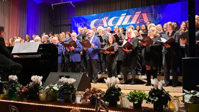 „Ihr macht nicht nur Musik, ihr schafft Momente, die die Menschen verbinden“, begrüßte der stellvertretende Ortsvorsteher Giovanni Rappa (SPD) die Cäcilia und erinnerte sich gerne an seinen Besuch des Jahreskonzerts im vergangenen Jahr. „Es war eine tolle, emotionale Veranstaltung“, sagte er und sollte damit auch für das anstehende Konzert Recht behalten. Die Sänger und ihre Chorleiter rissen das Publikum von der ersten Minute an mit. Es wurde im Takt geklatscht und mitgesungen, es wurde gejubelt und applaudiert. Mit Helene Fischers „Atemlos“ starteten der Gemischte Chor und The Next Generation, dann ging es gleich weiter mit dem Frauenchor und „Kings and Queens“, der Männerchor schloss sich an, sang Udo Jürgens „Ihr von Morgen“ und maß sich mit den Toten Hosen und „An Tagen wie diesen“.