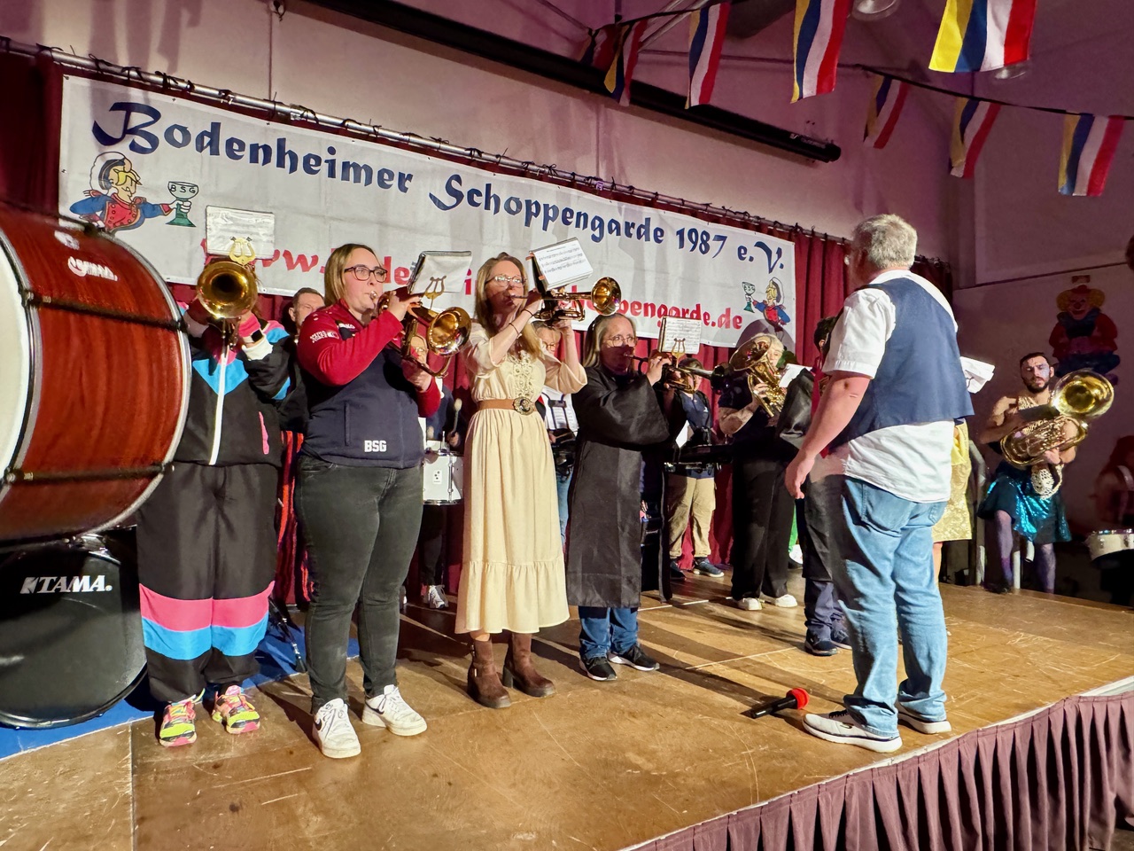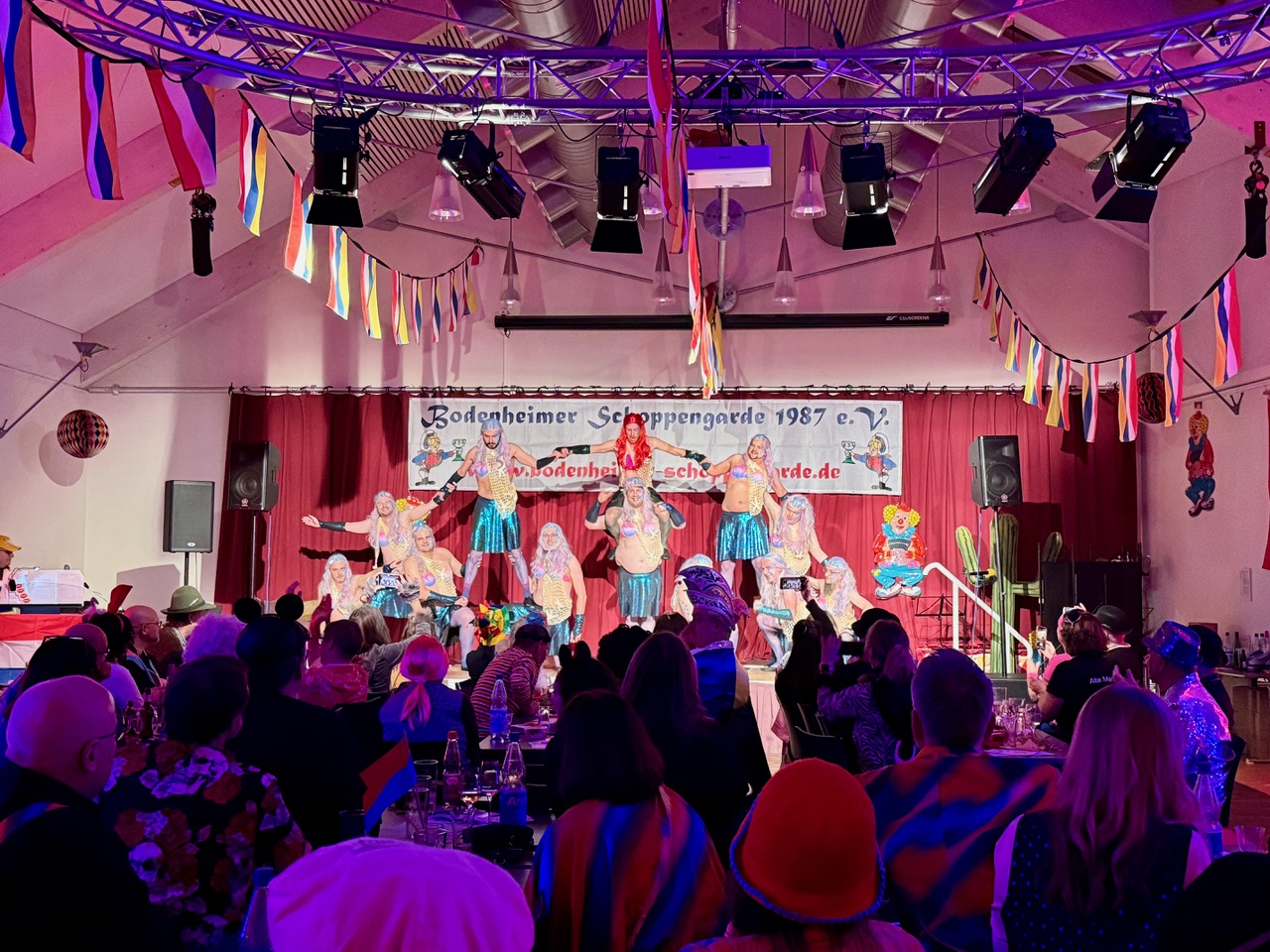 BODENHEIM – Das Bürgerhaus Dolles platzte aus allen Nähten: Die Bodenheimer Schoppengarde (BSG) lud zur großen Fastnachtssitzung. Nicht nur die Bodenheimer selbst waren zahlreich erschienen, auch viele Vertreter befreundeter Fastnachtsvereine sorgten für ein buntes, fröhliches und bestens gelauntes Haus. Fünf Stunden Programm, getragen fast vollständig von engagierten Laiendarstellern, die mit Herzblut und unglaublichem Einsatz auf der Bühne standen. Typisch: die große Familie Schäfer brauchte sich nahezu geschlossen ein – allen voran Volker Schäfer, der als Leiter der Garde nicht nur organisatorisch, sondern auch künstlerisch präsent war. Charmant und souverän führten Janneck und Ralf Schäfer sowie Thorsten Hartmann durch den Abend.