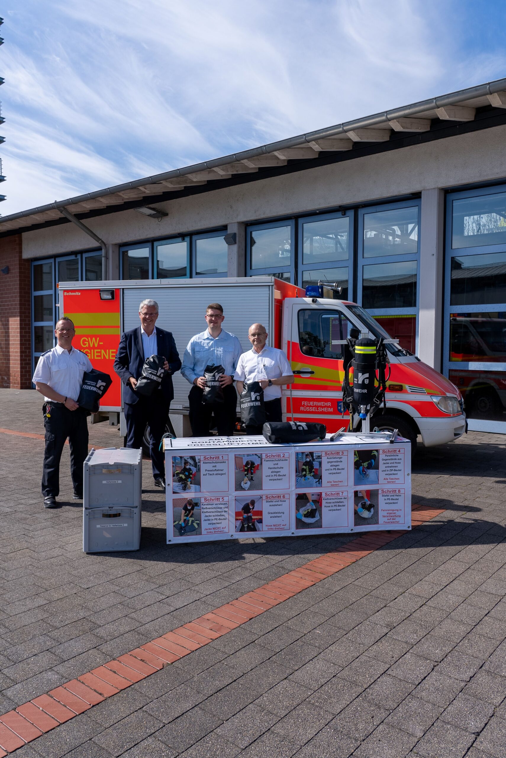 Oberbürgermeister Patrick Burghardt unterstützte das Vorhaben. Er hebt hervor, dass die Feuerwehr mit den „Drybags“ einen weiteren wichtigen Schritt zum Schutz ihrer Einsatzkräfte und zur Verbesserung der Hygiene bei Einsätzen geht.