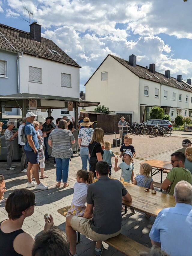 Wie kam es dazu? Thomas Becker-Theilig in seiner Rede bei der feierlichen Eröffnung des neuen Fichtenweges: „Es lohnt sich ein Blick in die Anfang 70er-jahre zu werfen. Im Fichtenweg und den benachbarten Straßen wurde eine Reihenhaus-Bebauung geplant, unter den Einheimischen heute noch bekannt unter dem Namen „die EiWo-Bau“-Häuser. Der heutige Fichtenweg als Zufahrtsstraße und als Zugang zu den Hauseingängen sollte es ursprünglich gar nicht geben. Als Zugangsstraße war eigentlich die rückseitige Thüringer Straße vorgesehen. Auch auf Wunsch der neuen Häusle-Bauer wurde kurzerhand die Andienungsstraße gespiegelt – auch zugunsten großer Gartenflächen und zugunsten südausgerichteter Terrassen. Dafür musste aus Kostengründen an der Ausbau-Qualität (sehr geringe Ausbauqualität, geringe Breite, kein Begegnungsverkehr) gespart werden. Aber immerhin es ging über 50 Jahre gut!“
