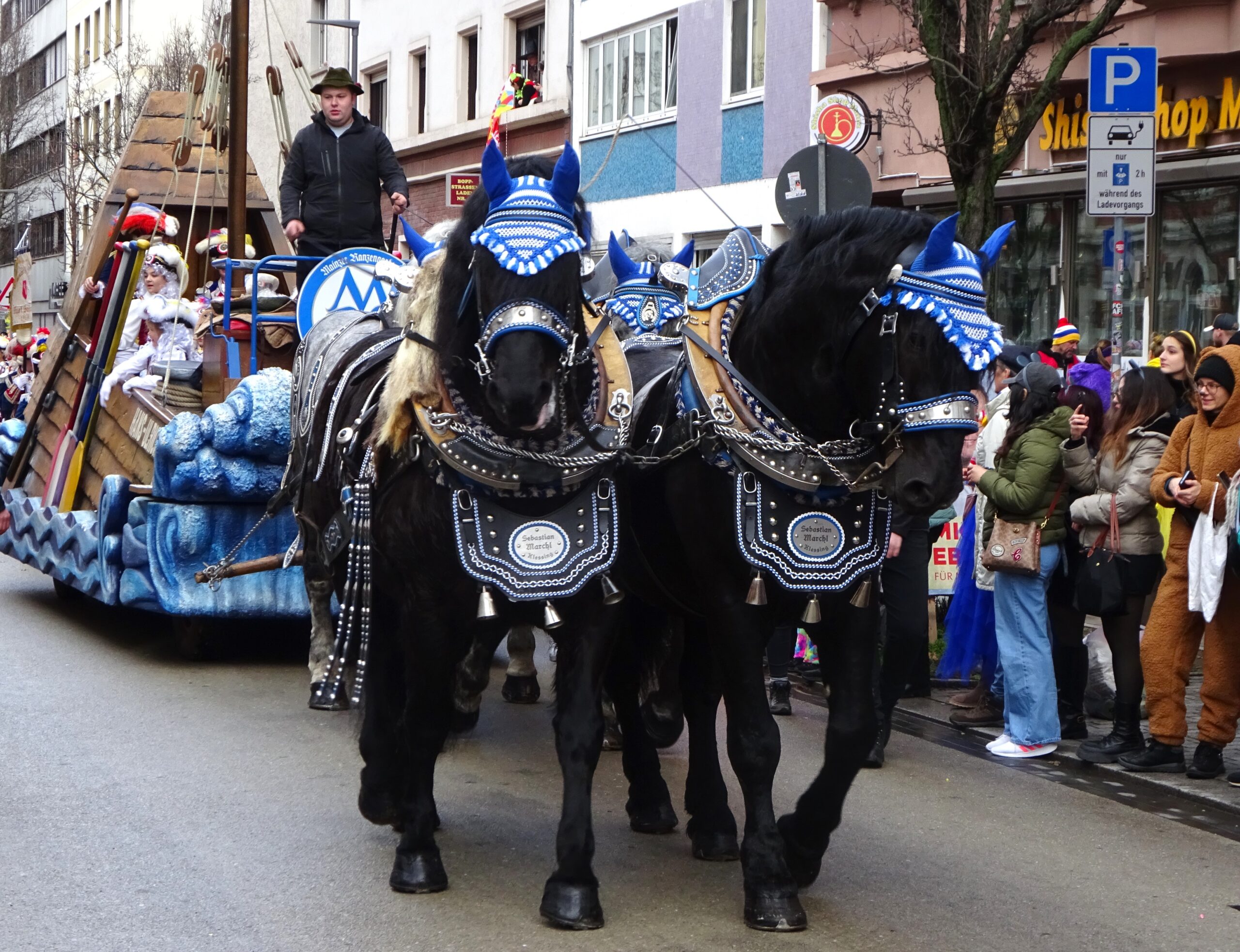 Stark vertreten waren die Musikgruppen, die Klassiker wie „Humba täterä“, „Rucki zucki“ und „Im Schatten des Doms“ schmetterten. Da der Schnee rechtzeitig geschmolzen war, konnten auch die Reiter und ihre Pferde sowie die schön kostümierten Pferdekutschen am Umzug teilnehmen.