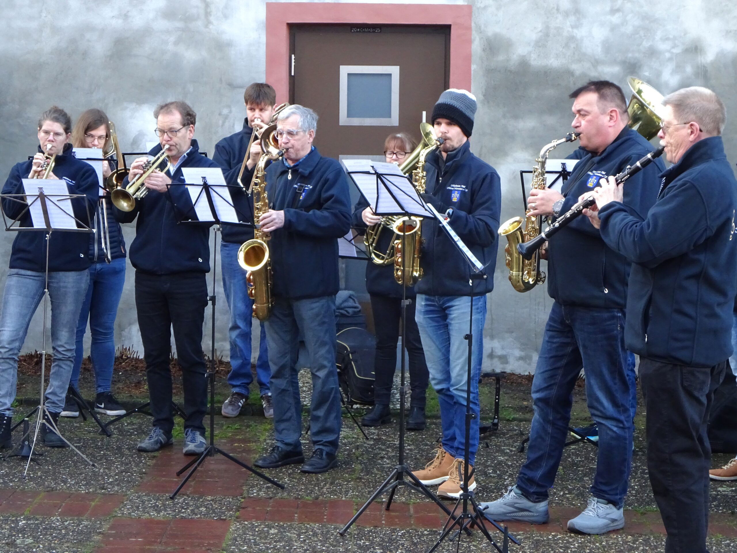 Zum Abschluss spielte der Musikverein Marienborn „Ich hatt’ einen Kameraden“. Dazu senkten die Abordnungen der Freiwilligen Feuerwehr, des TuS Marienborn und des DRK ihre Fahnen.