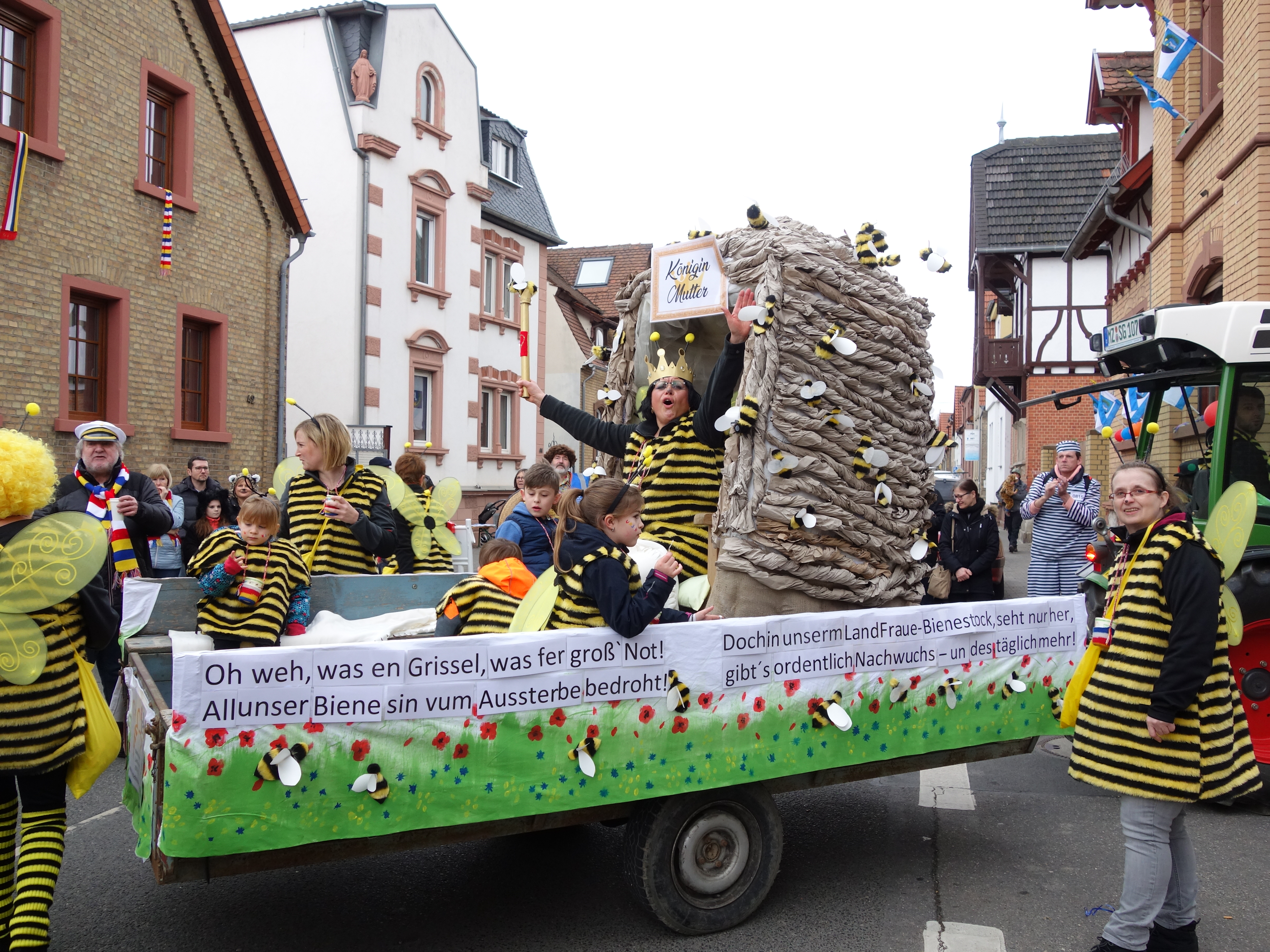 2019 sollte es ebenso schwungvoll weitergehen wie 2018 endete. Fest steht schnell: Die LandFrauen nehmen am Fastnachts-Umzug in Bodenheim teil. Schnell gesagt, aber … „LandFrauen sind soooo kreativ“ sagt Sabine Both. Sie machten den „Spitznamen“ der LandFrauen zum Thema: Bienchen! Es fanden sich viele „Bienchen“, die als Fußgruppe mitliefen incl. bunten selbstgenähten Bienen-Kostümen. Einen Bienenstock gab es auch – da saß Königinmutter drin und winkte huldvoll den Jecken zu. Und dann heißt es nach dem Umzug auf dem Dolles-Platz: „Den 1. Preis für den kreativsten Motivwagen erhalten die Bienchen der Bodenheimer LandFrauen!“ Wie das aussieht und wie es sich anhört, wenn 19 Frauen jubeln bzw. kreischen, brauch man nicht zu beschreiben…