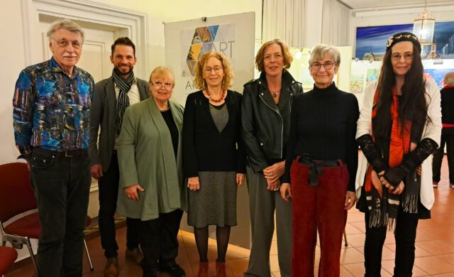Sieben Mitglieder der Künstlergruppe „Artificia“ stellten nun ihre aktuellen Werke in einer Ausstellung im Gonsenheimer Rathaus aus. Zur Vernissage begrüßten Vorsitzende Evelyn Herrmann-Schreiber und Ortsvorsteher Josef Aaron (Grüne) die Gäste: „Saugen Sie die Bilder auf“, zeigte sich Aaron begeistert von der künstlerischen Vielfalt in seinem Stadtteil. Kay Freier umrahmte alles mit den sphärischen Klängen, die er seinem Didgeridoo entlockte.