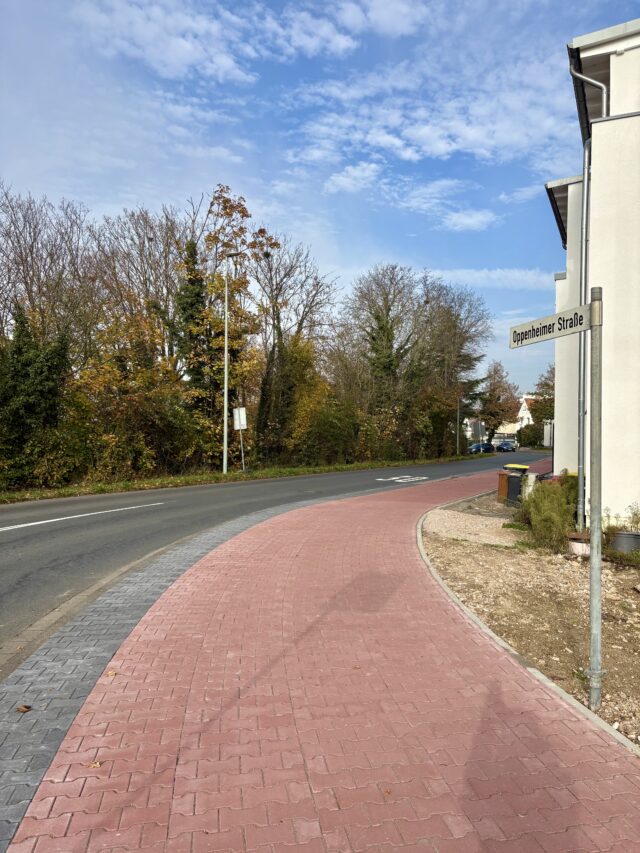 NIEDER-OLM – Die Arbeiten am Geh- und Radweg im oberen Teil der Oppenheimer Straße in Nieder-Olm sind abgeschlossen. Im Rahmen der Maßnahme wurden die Bordsteine abgesenkt, um die Zufahrten zu den angrenzenden Grundstücken, die zuletzt auf dem ehemaligen Dapper-Gelände entstanden sind, zu verbessern.