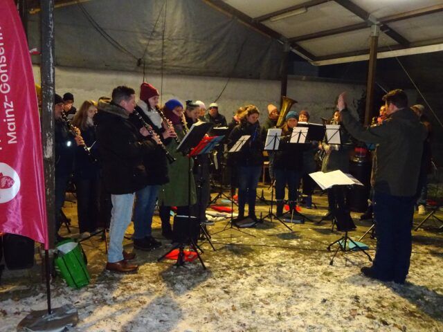 GONSENHEIM – Das Blasorchester der Freiwilligen Feuerwehr Mainz-Gonsenheim feiert in diesem Jahr sein 100-jähriges Bestehen. Das Jubiläumsjahr starteten die Musikerinnen und Musiker mit einer musikalischen Glühweinprobe unter Leitung von Niko Leikam vor dem Feuerwehrgerätehaus. Dabei konnten sich die rund 50 anwesenden Gäste von der musikalischen Vielseitigkeit des Orchesters überzeugen.