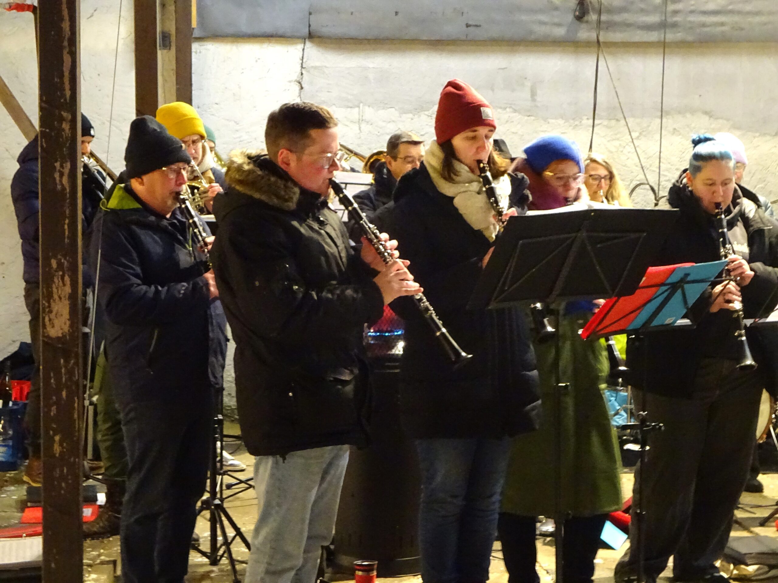 Die Zuhörer spendeten viel Beifall, wärmten sich bei Minusgraden an den Lagerfeuern und stärkten sich kulinarisch. Neben Glühwein und Winterbockbier gab es Bratwurst und Ofenkartoffeln. Der Erlös der Veranstaltung fließt in die Jugendarbeit des Orchesters, etwa in den Kauf von neuen Notenblättern.