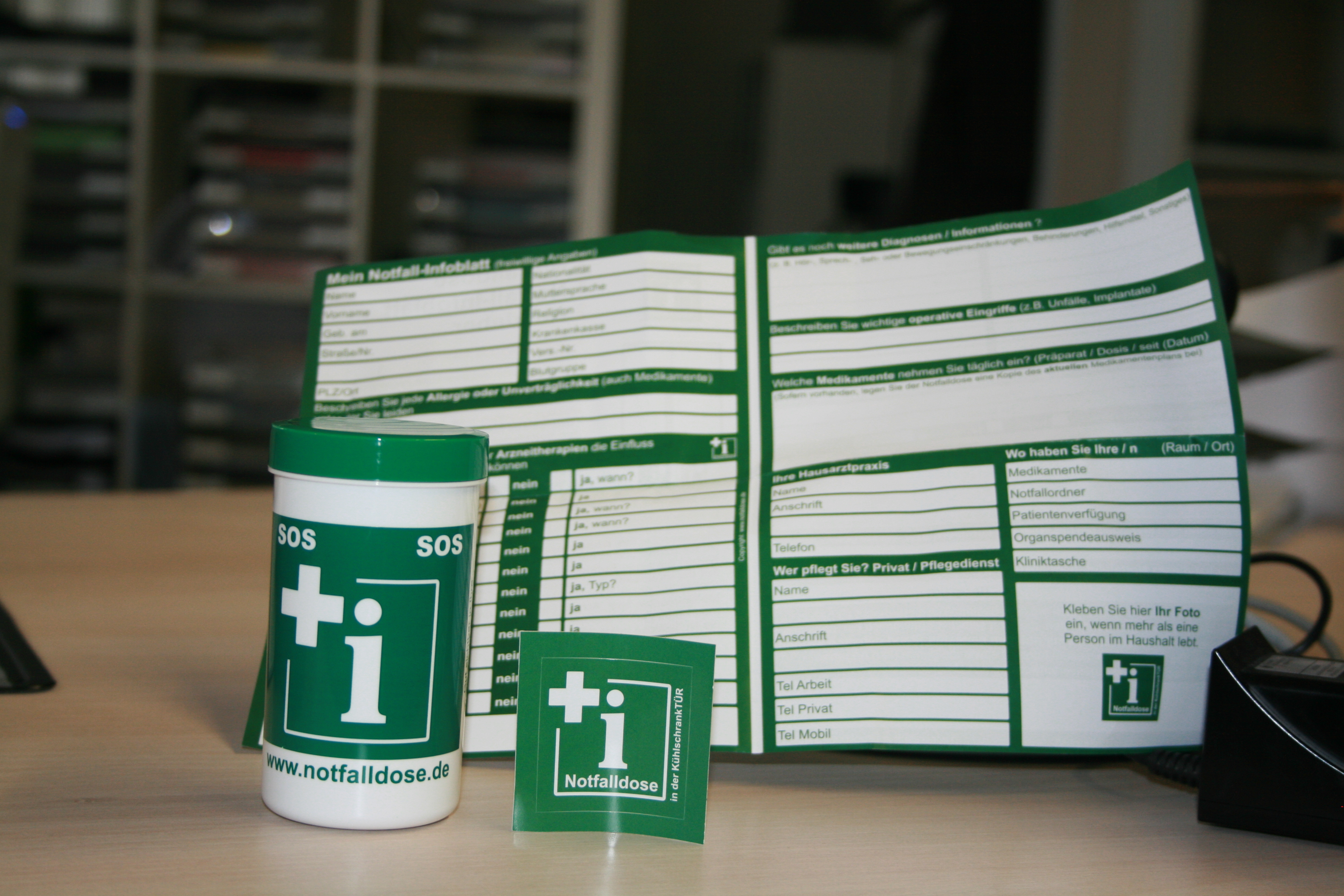 „Bei Notfällen drängt die Zeit und Patienten oder Rettungskräfte können nicht stundenlang nach den Notfall-Dokumenten suchen. Ein Hinweis, welche Krankheiten der Patient hat und welche Medikamente er nehmen muss sowie der Ort, wo beispielsweise Notfall- und Impfpass, Medikamentenplan oder die Patientenverfügung zu finden sind, hat der Patient im Idealfall dort zuvor vermerkt“, so Seniorenberaterin Gabriele Kortenbusch. „Die Informationen in der Notfalldose sind auch eine große Hilfe für Angehörige, Freunde und Bekannte. Auch sie sind in einer Notfallsituation unter Stress.“ Sinnvoll ist die Dose nicht nur für betagte Menschen. In Deutschland gibt es immer mehr Ein- oder Zwei-Personenhaushalte: Nach Information des Statistischen Bundesamtes in Wiesbaden lebten bereits 2012 in 75 Prozent der privaten Haushalte maximal zwei Personen.