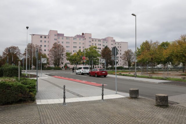 Eine neue Kreuzung gibt es seit diesem Jahr im Bereich Max-von-Laue-Straße / Adam-Opel-Straße. Sie ist ein wichtiger Meilenstein für die Erschließung des künftigen Wohngebiets „Quartier am Ostpark“, in dem die gewobau bereits die Bauarbeiten für die ersten Wohnungen begonnen hat. Um den neuen Ziel- und Quellverkehr zu leiten, ist der Kreuzungsbereich nun signalisiert und ermöglicht zusätzliche Fahrbeziehungen in und aus dem Quartier. Auch der Radweg wurde als Teil des städtischen Radroutennetzes und des Schulwegs zur Immanuel-Kant-Schule angepasst. Der fahrradfreundliche Ausbau und damit die Anbindung von der Immanuel-Kant-Schule nach Königstädten waren im Radverkehrskonzept und im Schulmobilitätsplan (SMP) der Schule enthalten. Die Baumaßnahme an der Kreuzung konnte in nur fünf Monaten und damit deutlich zügiger umgesetzt werden, als ursprünglich geplant.