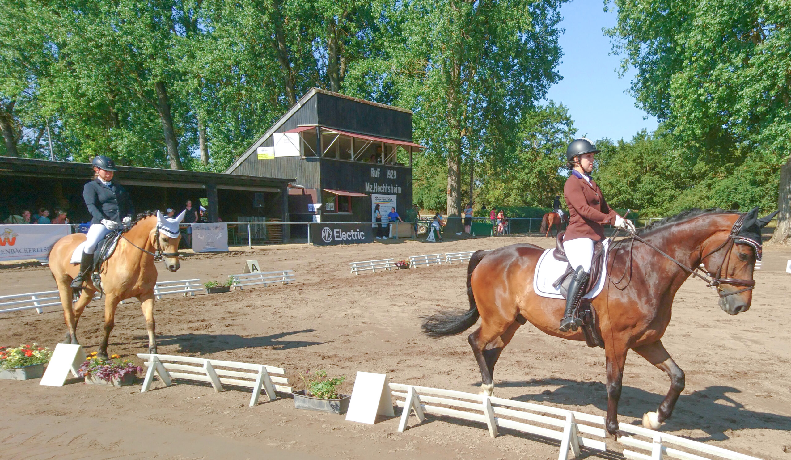 Während auf dem vorderen Platz des nahezu 100 Jahre alten Vereins mit derzeit 160 Mitgliedern um Preise gekämpft wird, werden andere Pferde im Schatten eines kleineren Paddocks warmgeritten. Die Kuchentheke ist an diesem Wochenende sehr begehrt und auch die Getränke verkaufen sich bei den Temperaturen gut. Ein Spaziergang über die Anlage unter schattigen Bäumen schafft ebenfalls Linderung. Und zuletzt ist es für viele der Anblick der herrlichen Pferde, der die Herzen zufrieden höher schlagen lässt.