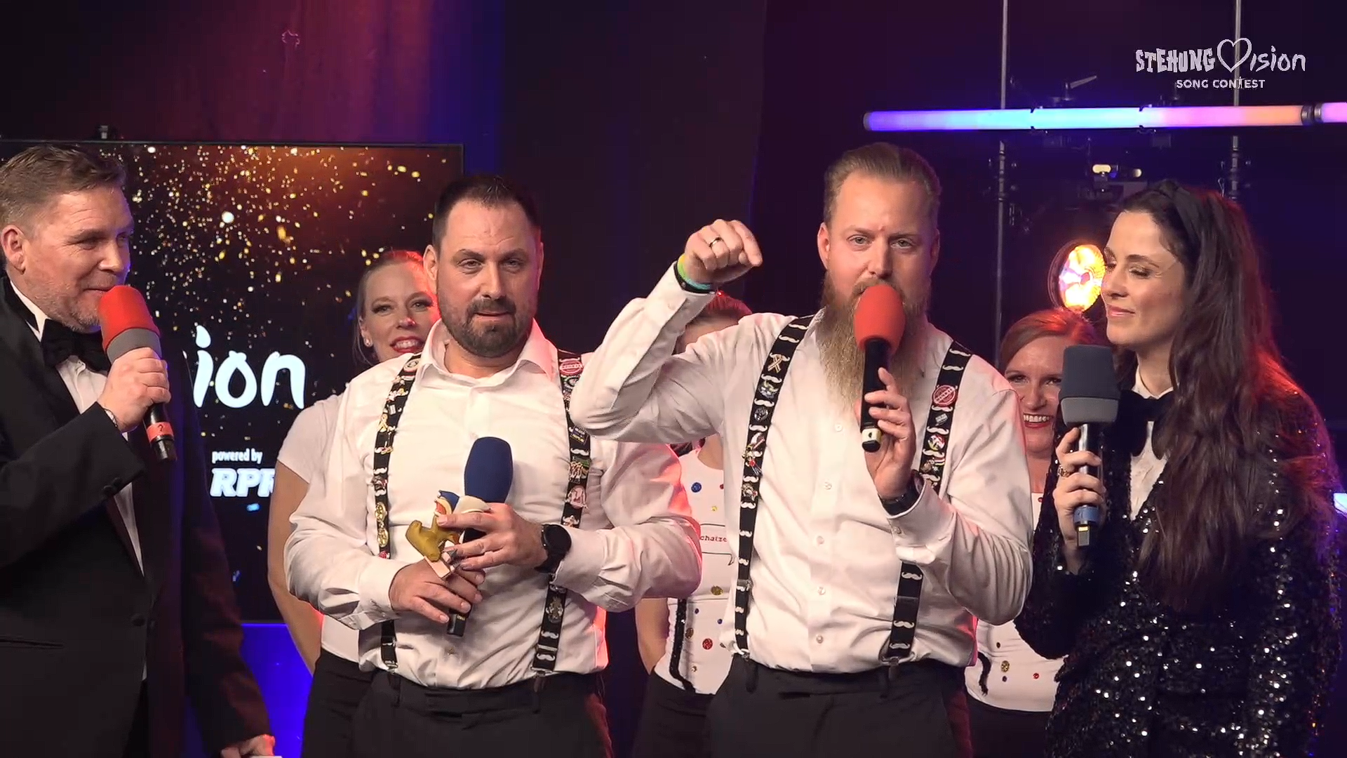 „Hollebutz“ alias Marvin Hollederer, der den „Goldenen Steher“ auf die rechte Rheinseite brachte, war der Sieger des Abends. Der Newcomer trat mit seiner Band für Mainz-Kostheim an. Mit dem Siegertitel „Geh’n mer wieder bei die Helga, da sin mer schnell da, hinterm Bahnhof gibt’s en Schobbe“ hat er Helga Nass und ihre Kultkneipe in der Mombacher Straße hochleben lassen. Bei dem Auftritt war eine Theke auf der Bühne aufgebaut, an der die Kultwirtin höchstpersönlich stand. Den Sieg konnten beide nicht fassen und strahlten den Rest des Abends vor Glück.