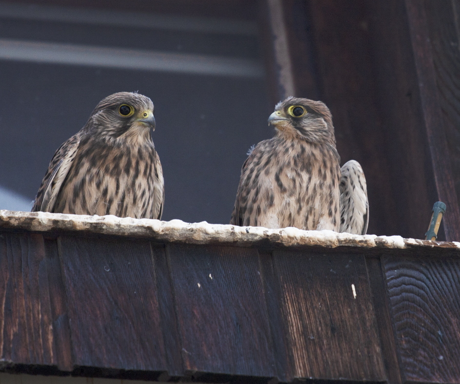 LAUBENHEIM – In nicht einmal acht Metern Höhe im Fensterbrettkasten eines Einfamilienhauses im alten Ortsteil von Laubenheim waren sie zu beobachten. Dort hatten sich nämlich zwei erwachsene Turmfalken mit ihren vier Jungen niedergelassen. Einige Zeit lang konnte man die Falkeneltern beobachten, wie sie ständig auf der Suche nach Futter für ihre Jungen waren. Inzwischen sind die Kleinen flügge und haben das Nest an der Ecke Berghofstraße/ Am Alten Spritzenhaus verlassen. Drücken wir die Daumen, dass es Ihnen in Laubenheim gut gefallen hat und sie sich bald wieder hier niederlassen!