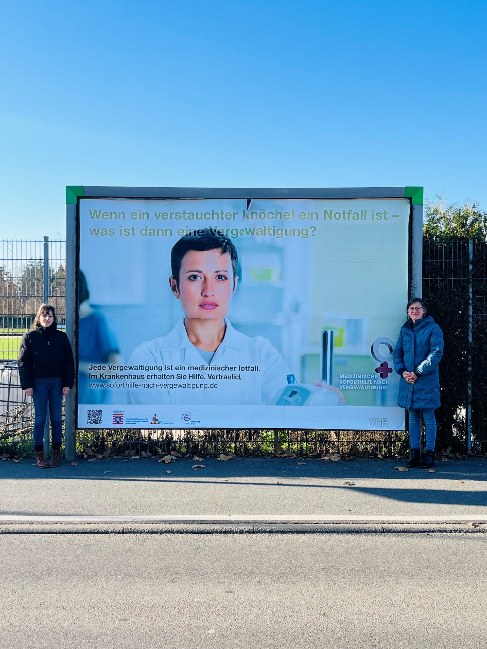 Werbung mit Großplakaten Modellprojekt Medizinische Soforthilfe nach Vergewaltigung