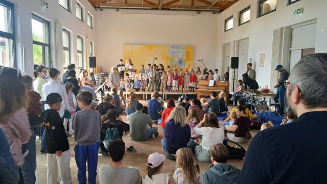 LAUBENHEIM – Riesiges Getümmel im katholischen Pfarrzentrum: Unzählige Kinder saßen im großen Saal auf dem Boden, ihre Eltern stehend in zweiter Reihe. Die private Musikschule Laubenheim hatte unter der Überschrift „Wie finde ich mein Lieblingsinstrument?“ wieder zum Instrumentenkarussell eingeladen. Eine beliebte Veranstaltung, bei der Kinder nicht nur vieles über Streich-, Blas- und Schlaginstrumente lernen, sondern ein Instrument unter fachlicher Anleitung auch einmal selbst ausprobieren dürfen. Rings herum an den Wänden waren Flöten, Geigen, Saxofone, ein Schlagzeug, ein Klavier und viele andere Instrumente ausgestellt, die die Musiklehrer teils mit ihren Schülern in der nächsten Stunde kindgerecht vorstellten und spielten. Das kleine und große Publikum lauschte fasziniert und versuchte abzuwägen, was wohl am besten zu einem selbst oder den eigenen Kindern passen könnte.